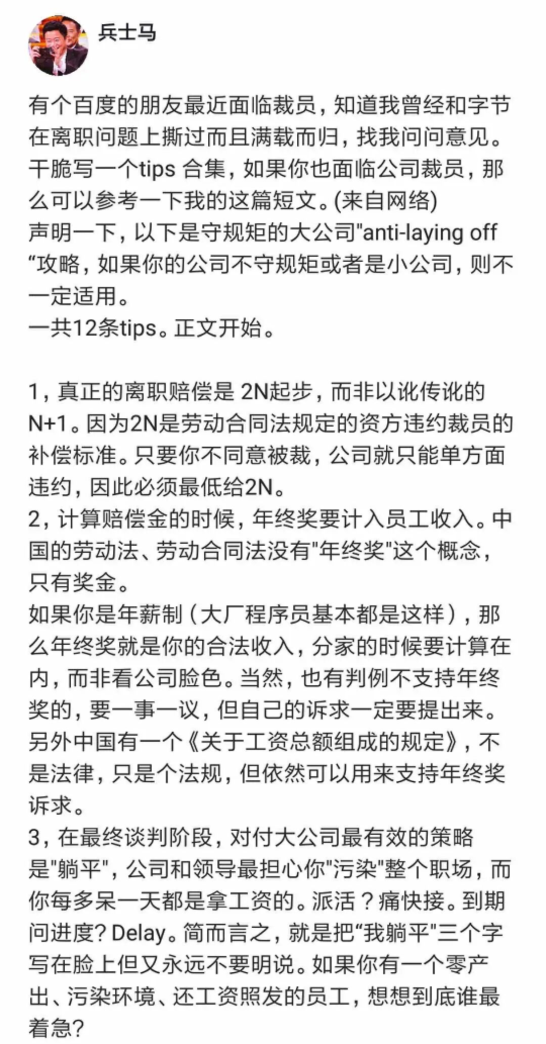 企业真按照正常流程来,哪有那么多事,想发展,就疯狂的扩招,没有风险意识,没发展了,就疯狂的裁人。企业产生的资金链问题,都是自己造成的,真有风险意识,好聚好散,还能赢得口碑。