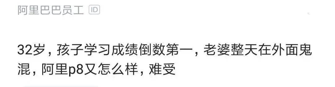 阿里在IT行业够厉害吧,属于IT行业成功的代名词,看看他的家庭状态,感觉一塌糊涂。没日没夜的工作换来的是什么?换来的是家庭的不幸。别看很多人在职场是春风得意,结果在个人生活方面却是不尽人意。