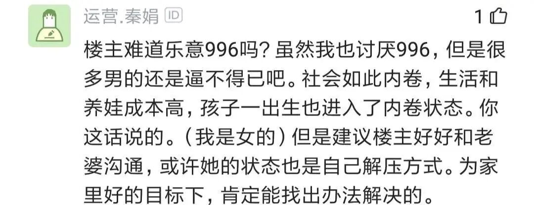 跟996没有关系,跟自己是否会经营关系有关。有的人智商非常高,但是情商不一定高,另一半也是有情感的,情感的交流涉及多方面,彼此都有问题,先找出问题所在,再看怎么去处理问题。不幸福的时候,去研究一下幸福的家庭,看他们是怎么做的。