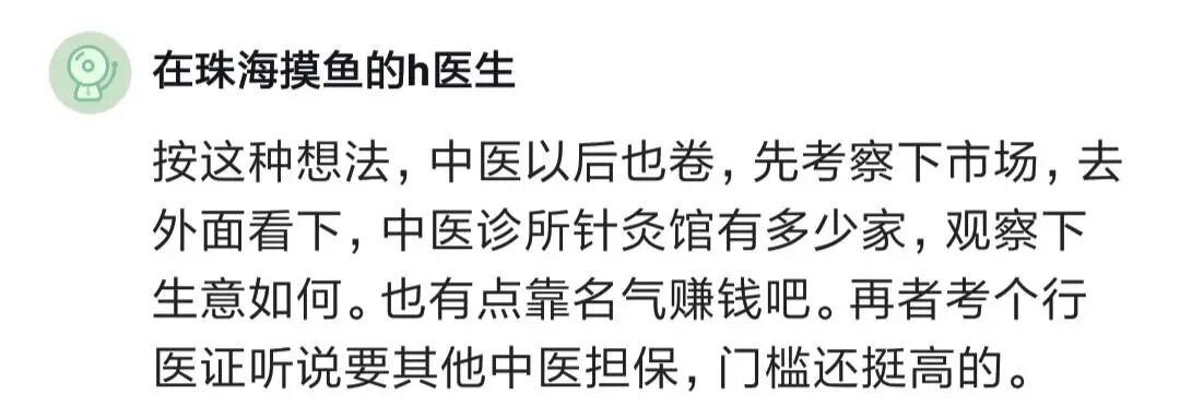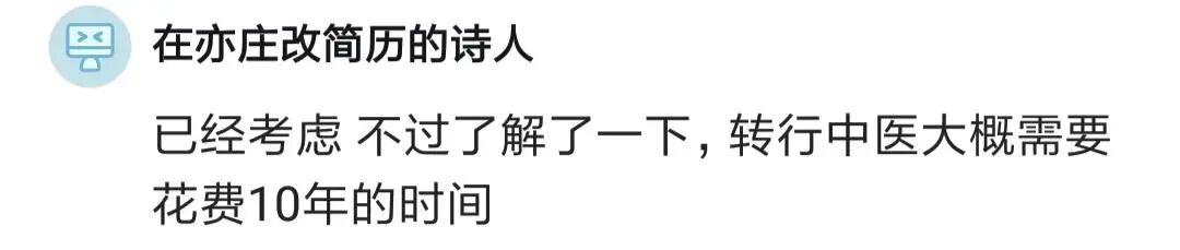 说一个事实,中医在国内有广大的市场,真要是在这一行转型成功,前途无量。不只是中医,任何一个领域都有广大的受众,只要你拥有绝活,就有你的立足之力。