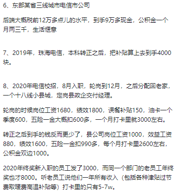 对电信员工的薪酬看完之后满意吗?有些人可能会疑问,自己这么多年就没有拿过这么高的薪酬。岗位与岗位不同,职级不同,做的业务也不同。薪酬是没有可比性的。
