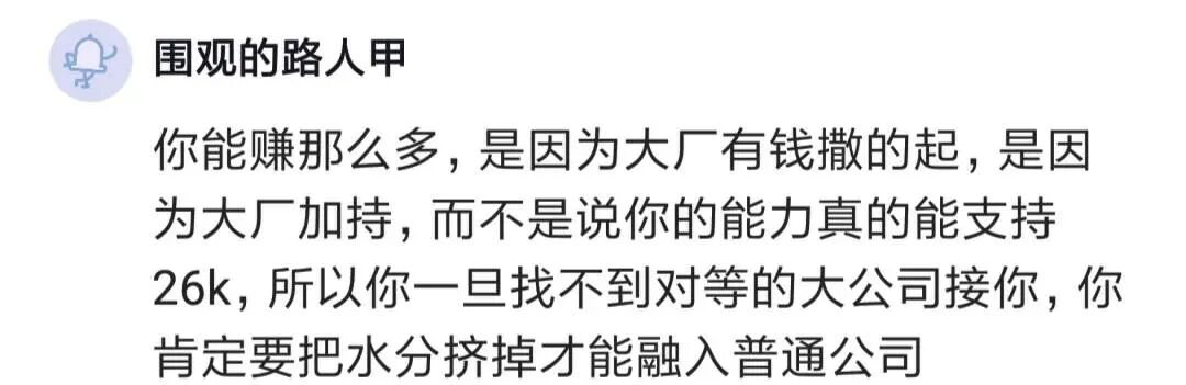 根源就是现在市场不缺人,不管你是哪个大厂出来的,现在市场上比你学历高,跟你一样能干活的人特别多,关键人家要的还比你少。在岗位有限的情况下,你说企业会怎么选择?