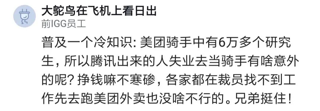 不要小看外卖这个群体,很多人以前的身份都不错的,并不是所有的人都实现了财务自由,大多数人都只能是勉强度日和谋生。一旦没有工作了,压力也会很大的。不工作,还有收入的,是少数人。