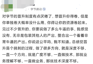 不只是字节这样,在任何地方都是一样的。以前在一家公司,去的早,就因为跟领导距离远,反而是后入职的人获得了晋升。比别人会干活不是本身,获得领导的认可才是真本事。