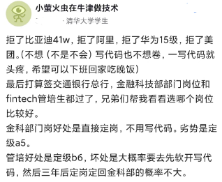有选择的人,去哪里是根据自己的意愿,不喜欢随时换都行。确实经过多年的发展,有些条件不错的人,拥有高学历了,不喜欢去大厂,条件不好的例外。谁工作都是希望轻松和安逸,而不是加班加点。