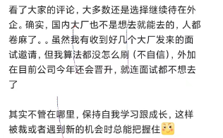 国内大厂现在很卷,想进去难度也大,能有面试邀约,还是不错的。可以体验国内大厂的面试,说不定哪天外企也不稳定了,也有一个备选方案。在好的时候,为不好做准备了,才容易发现新机遇。