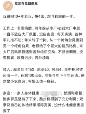 大龄的状态基本不太好,要不就转行,要不就换方向,要不就降低薪酬,要不还在一线拼搏,总之还是要找事做,躺平是不可能的。如意的肯定是少数,毕竟都是时代的浪潮儿。