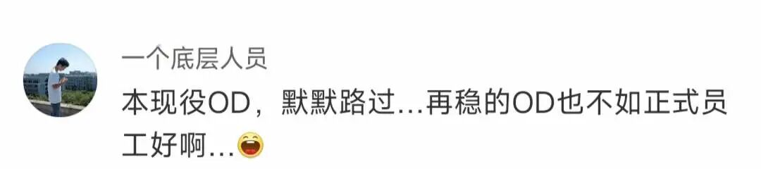 不要拿OD和正式工比较,压根就没可比性,如果是你能去做正式工,会选择做OD吗,脑子只要正常,应该都知道怎么选。成本低的人,现在更稳定,成本高的人,相对不那么稳定。