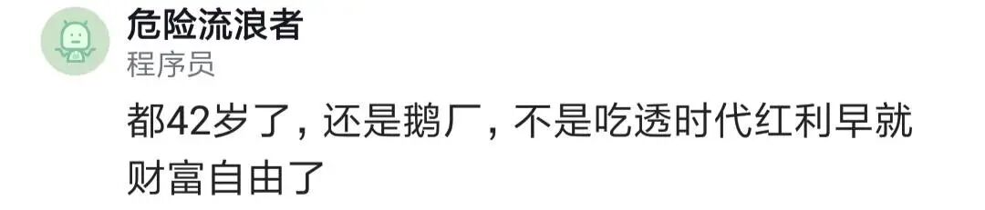 在大厂能工作到42岁,确实很厉害了,赚到的钱也不会太少,但人终究还是需要工作。在职场42岁大,但在社会上这个算年轻,还有几十年怎么过,不可能每天吃喝就啥事不干。
