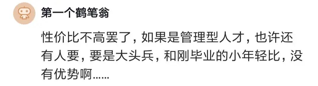 是不是大厂出来的,年龄大了,还有机会,在市场发展好的时候可能有,但在行业发展不好的时候很难有。能赚钱的时候,多留点钱,钱多了,利率低,利息也能生活,因为求职的问题等于无解。