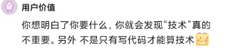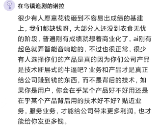 技术厉害的人很多,但做出好产品的概率小,技术用得再高大上,不一定能卖出去产品,技术用得一般,不一定卖不出去。市场上你要什么都有服务,商业的问题不是技术能解决的。