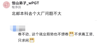 人选择什么,就会得到什么,不想卷,就只能如此了。央企现在也很卷,社招的标准高,一般大厂的容易去,同类型的不一定,应届的身份只有一次,用完了,后面再跳槽就是社招。