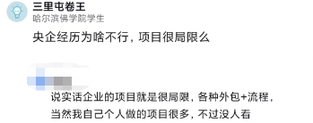 去了央企,不要被央企化,一样要保持学习,跟市场接轨,不然哪天不如意,想出来,也有选择的能力。