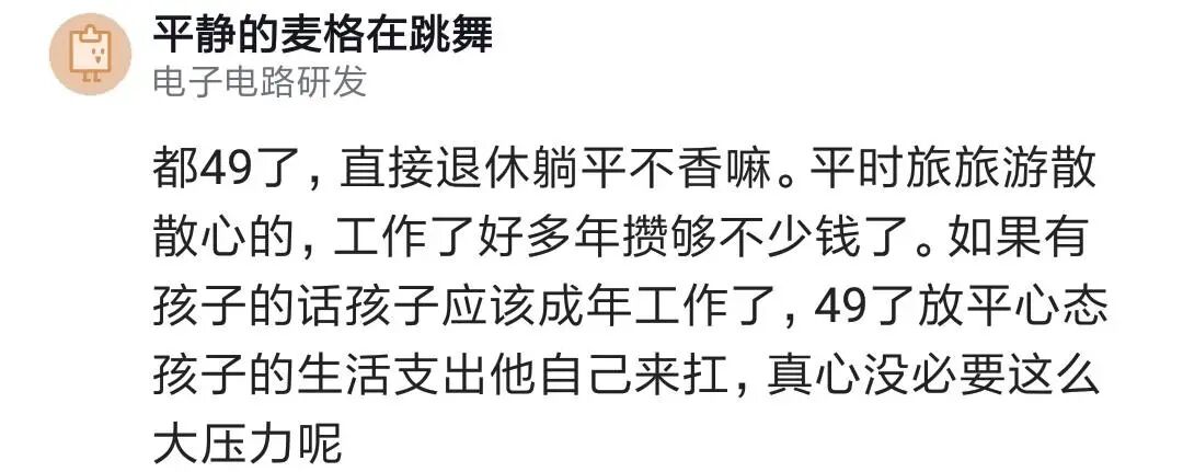 有些人是年龄还没到,真到了,就会不一样。做技术行业的,不做技术,能做其他啥,哪怕是服务行业,年龄也被限制在45岁。多了解下不同行业的招聘信息,对年龄的认知就会不一样。