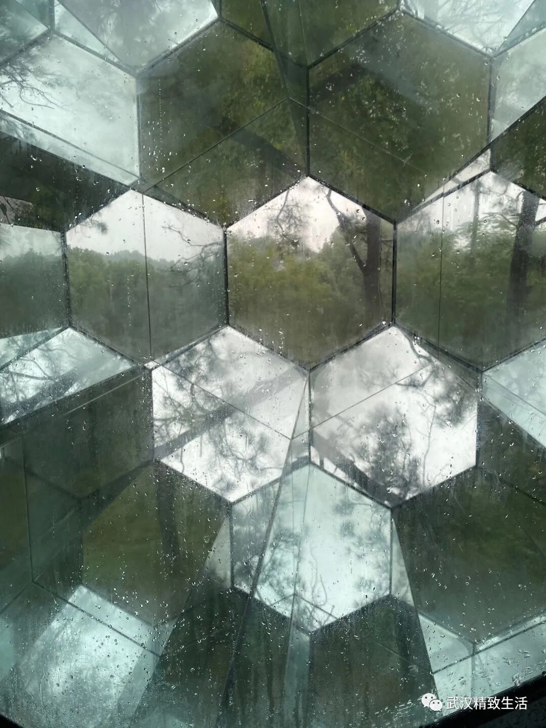 东湖杉的入口处,便是一座由上下楼梯组成的各种玻璃镜组成的魔方,在反光镜多束光的同时反射下,能看到众多不同角度的自己,充满现代和迷幻的气息。