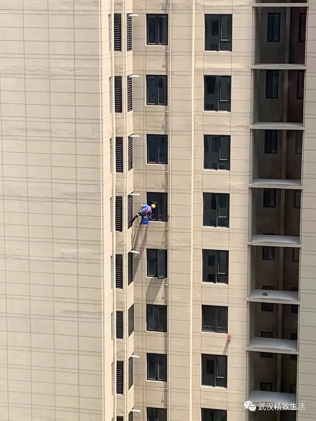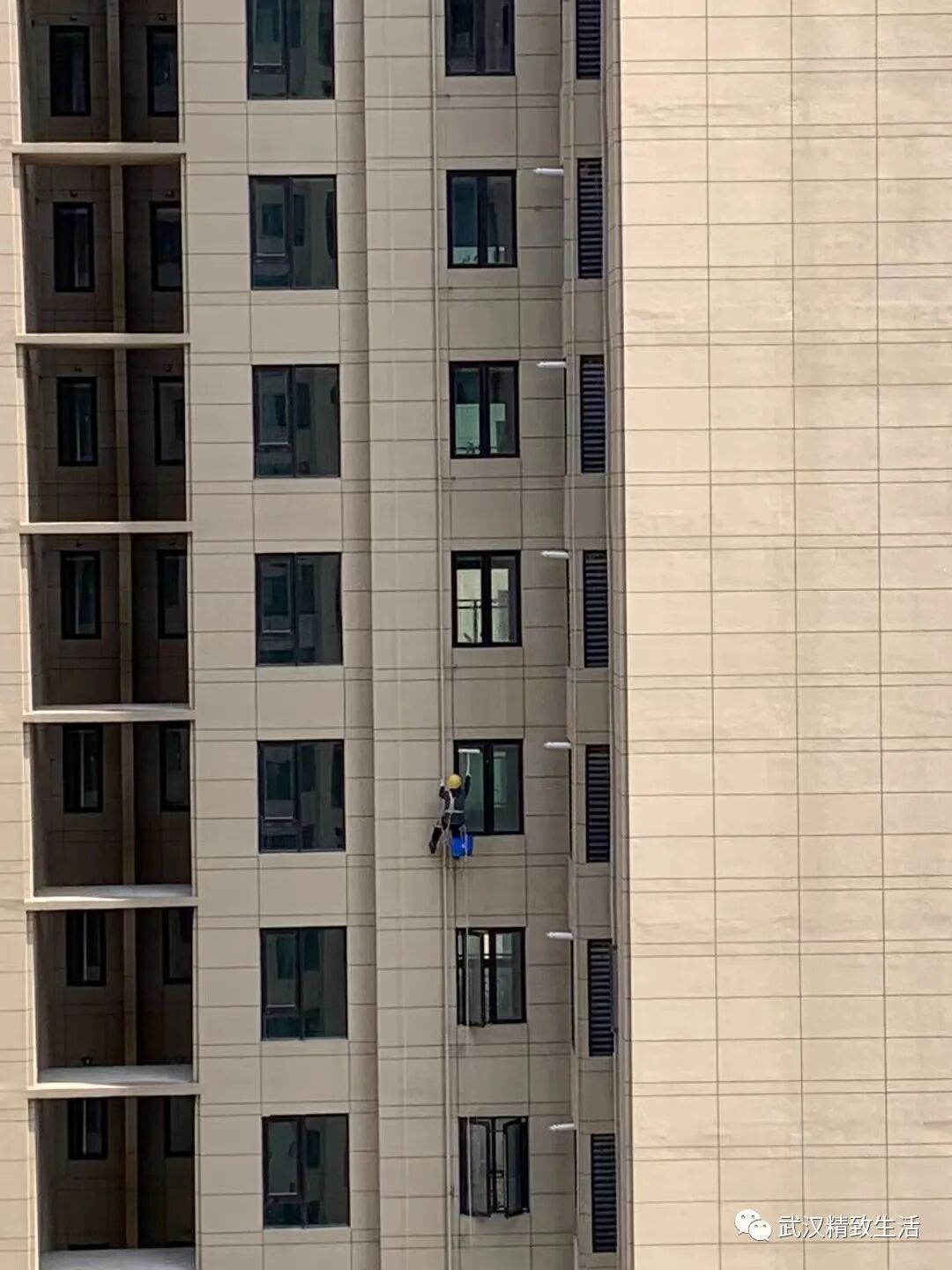 武汉有些幕墙的建筑工人,以及外墙玻璃需要清洗的工人,由于项目的工期非常短,或者临近交房,需要做一些清洁维护,因此,不论温度多高,这些工人都将待命上战场,完成交房前的最后一道工序,为保障交房做重要的贡献。