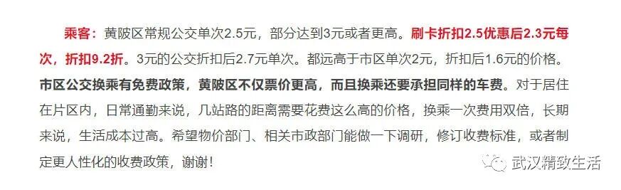 如果黄陂人民想要改善公交车单次票价过高,要么增加黄陂乘坐公交的人数,让黄陂的存量人口增长,增加乘坐公交的幅度和比例,让公交公司认为有改善票价的概率。要么,通过黄陂区与公交集团协商,从区里补贴票价,优化票价,不过这样的民生项目,区里如果没有这样的经费和预算,不一定愿意。