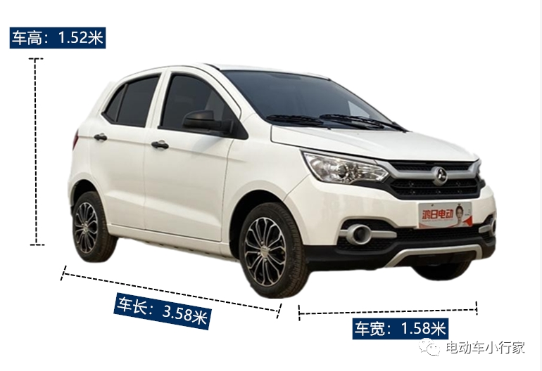 车辆的整车尺寸为3580×1580×1520mm,是一款中规中矩的微型电动乘用车,而从外观来看,没有老年代步车的模样,和汽车相差不大,而在主要的结构上,和汽车也很相似,虽然是标准4座,但由于空间较大,后座也坐3人,能够实现5人同乘,而它同样有上掀式后备箱,能够存放随车物品。