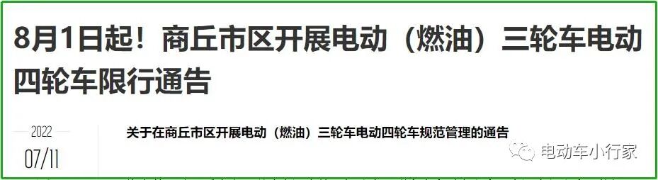 第5个变化:商丘8月1日开启电动三轮车、电动四轮车等低速电动车限行