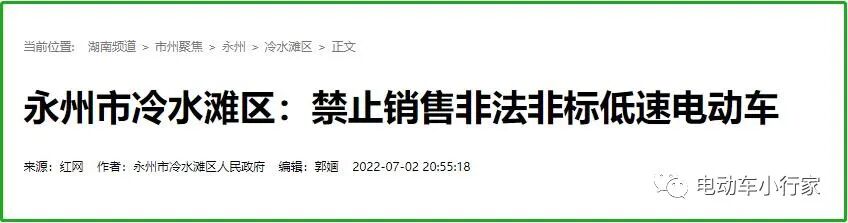 第6个变化:永州市冷水滩区禁止销售非法非标的低速电动车