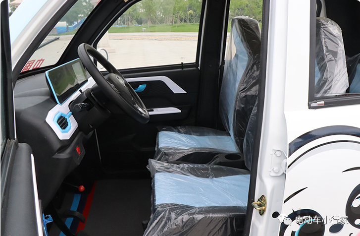 车辆采用五门四座布局,分体式座椅,载人能力突出,乘坐更舒适,中控台配置悬浮式大屏,倒车影像、蓝牙连接应有尽有,车内还标配风扇、电动雨伞、电暖风等配置,增加驾车舒适性。