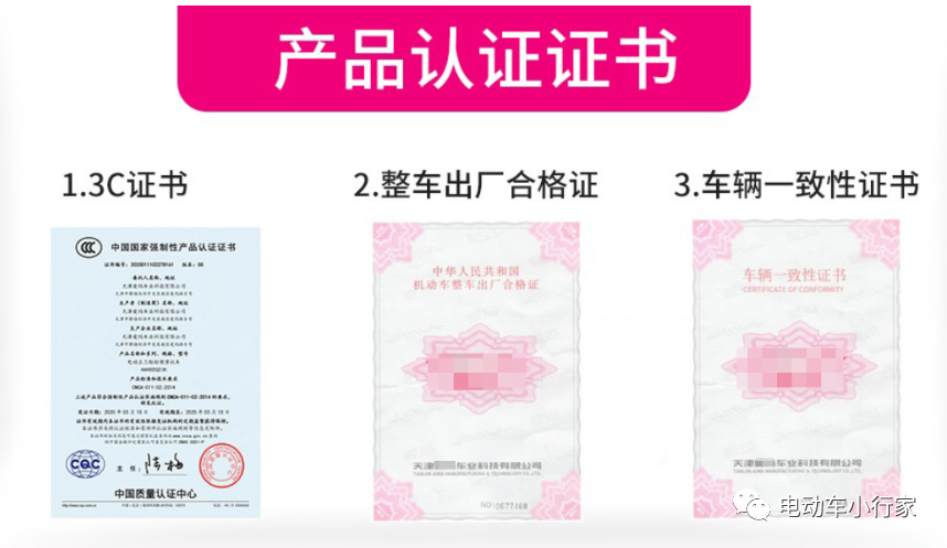 为什么车辆需要3证齐全:这一个方面的资质要求,其实是最容易理解的,购买任何电动车,都需要一定资质,比如电动自行车,需要提供车辆合格证,3C认证,而电动三轮车、四轮车作为机动车,还需要一致性证书,只有资质齐全,代表车辆的生产是合规,生产的产品是被认可,消费者也才能买的更放心,用的更安心。