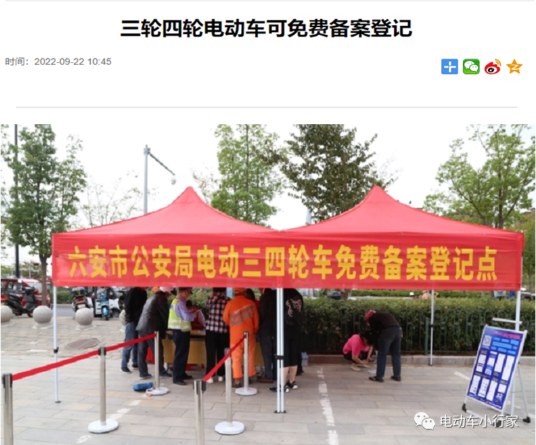 因此,这类车辆上路是一大难题,而电动三轮车、四轮车的使用用户,又多为老年人、乡镇农村市场为主,车辆无法上牌,导致不能继续上路,影响出行怎么办,在这一两年,就有包括合肥、六安、阜阳、睢县以及甘肃、山东部分城市,采取了违规车辆免费备案登记管理,让车辆可以获得号牌,可以继续上路,解决老百姓的上牌用车难题。