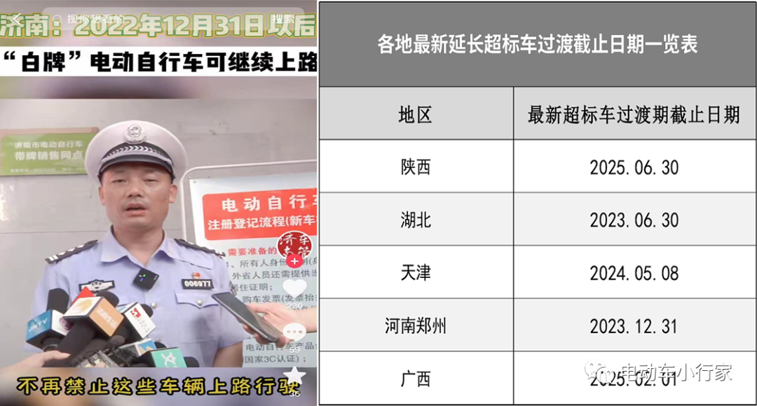 但是,在北京、浙江等多地,都明确了超标电动车到期后不能上路,违规上路会罚款甚至扣车的背景下,也有包括山东、陕西、湖北、天津、河南郑州等多地,都延长过渡期,车辆可以继续上路,不用罚款,解决车辆上路难题。