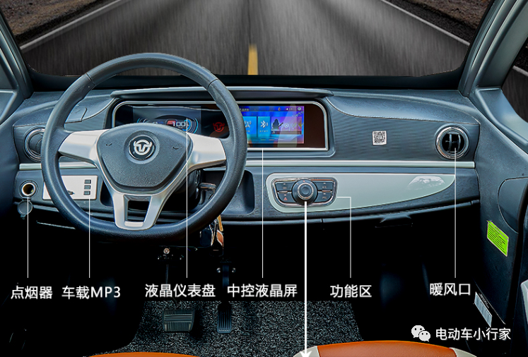整车属于比较小巧的车身,只能采用两门设计,但为了保障载人实用性,车辆内部设置4座座椅,用来代步接娃买菜,一车可以搞定,车辆带有高清倒车影像、暖风开关,多媒体MP3等,满足用车需求。