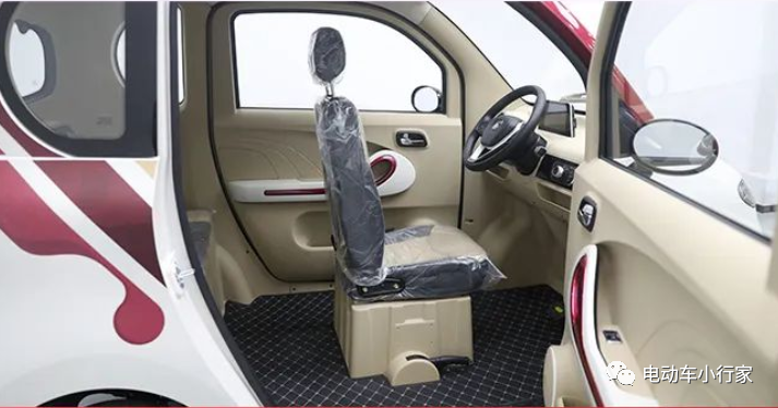 该车长宽高尺寸为2535×1240×1630mm,小巧灵活,两门的设计,内置三人座椅,保障基本的实用性,驾驶舱采用超大空间设计,汽车式立体皮纹内饰,带有汽车级豪华座椅,打造舒适座舱,而车辆采用超大门窗,双轨道电动门窗,开门角度可达65°,上下车十分方便。