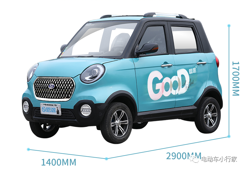 车辆的整车尺寸为2900×1400×1700mm,在低速电动车中属于不小的车型,但为了确保它的车辆空间,车辆依旧采取的五门四座的设计,让乘车人乘坐不拥挤,车辆车身是一体冲压结构,外观色调统一,造型时尚可爱,属于一款有颜值的低速电动车。