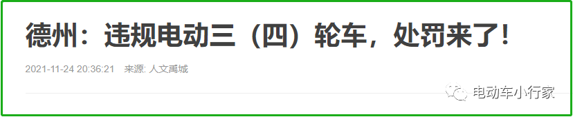 广东江门:江门交警提醒,不属于国家机动车产品公告登记,不符合国家标准的新能源电动四轮车上路,属于违规上路。