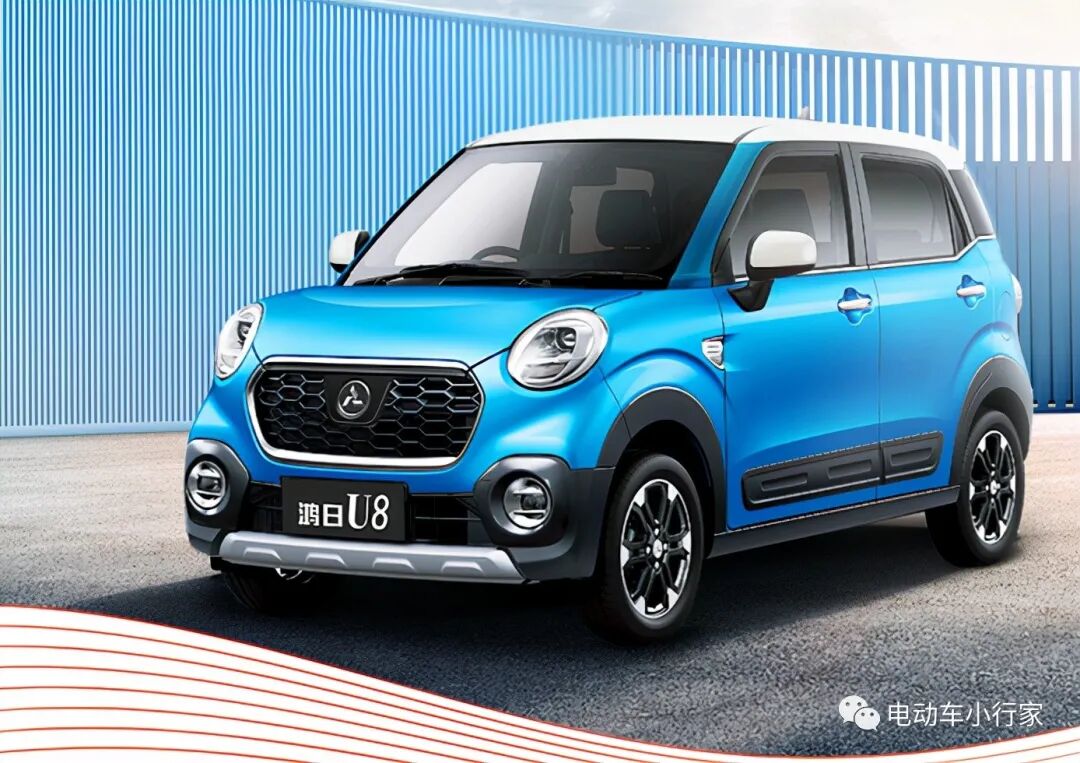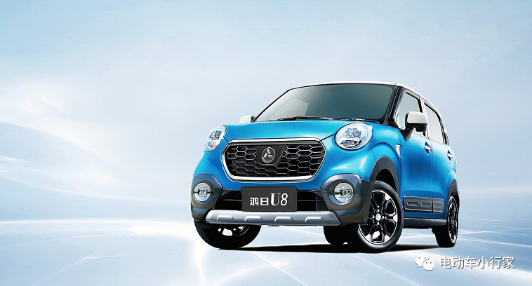 鸿日U8外观造型可爱,圆圆的大灯,像极了深邃有神的眼睛,整体是比较时尚、可爱的车型,另外,它的方方面面参数,都符合国标要求,整车尺寸为3395×1495×1630mm,符合国标要求的长度不大于3500mm、宽度不大于1500mm,高度不大于1700mm;搭载的为磷酸铁锂电池,能量密度大于140 Wh/kg,远远高于国标要求的不低于70Wh/kg。