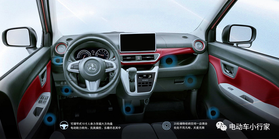 其他配置方面:这款车的配置可以媲美A0级乘用车,车身是由一体冲压成型钣金制造,配备了轿车级底盘、内置加宽加厚纵横双防撞钢梁,安全防护能力会更好;车辆智能配置十分齐全,搭载了高清大屏,并且配备了智能的交互系统,听课、导航、听广播,说一声就能搞定;另外,车辆还配备了可调节15寸超大方向盘、20处储物空间等实用配置。