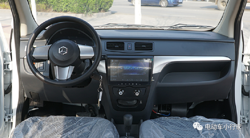 内饰方面:这款车的内饰相对朴素很多,也没有很多潮流元素,和普通的老年代步车基本一致,没有太多的亮点,不过,基本配置还是齐全,方向盘式操控,4座设计,大屏仪表盘,还有9寸多媒体大屏,并且支持倒车影像等影音娱乐功能。