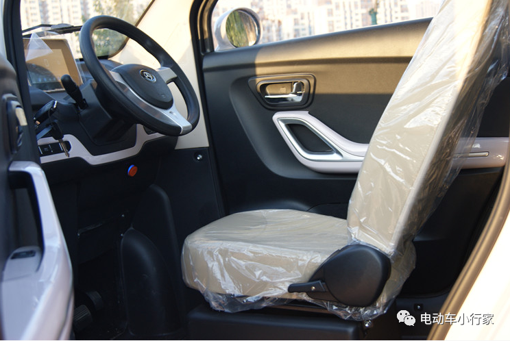 内饰方面:车辆轴距达到2385mm,长轴距给了车辆更大的空间,摆脱了低速电动车拥挤的现状,虽然是为了符合国标改版了4座设计,但5人也能坐得下;内饰色系方面,以浅咖色和白色为主色调,给人一种简约而不失品味的感受。