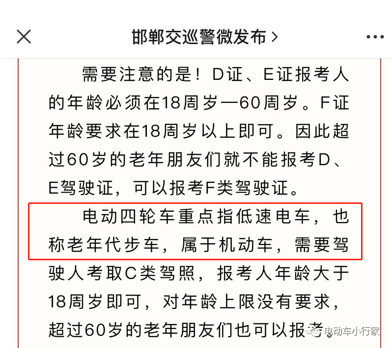 总结:以上就是小行家总结的,当不要驾照的三轮、四轮车,正在变成“双高”车型,老年人应当学会的应对方法,车主应当改变以前这类车买了就能用的思维,作为机动车,电动三轮、四轮车有必要,而且根据道交法,是必须要遵守相应的规则,才能上路,因此,作为车主,应当在购买和上路做好“万全准备”,这样才不用担心被处罚的问题。