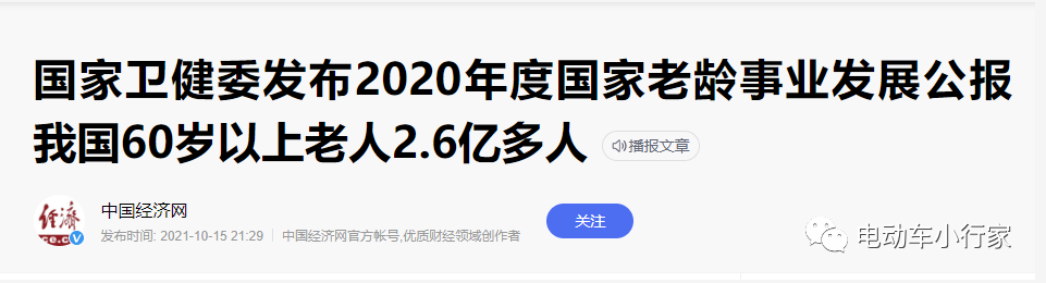 不应该取缔的原因1:低速四轮电动车是老年人的出行工具,而老年人又是人口的主要群体之一,国家卫健委在2021年10月15日发布的2020年人口数据中,我国60岁以上老人2.6亿多人,如此庞大的人群,他们需要代步工具,直接取缔老年代步车,会给很多老年人的出行造成不便。