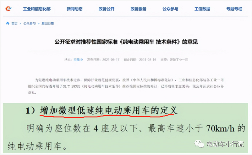 近期小行家关注到网上有一种消息,被称为老年代步车的低速四轮电动车可能会在2022年11月迎来转正,届时去年6月修订的《纯电动乘用车技术条件》征求意见稿会发布实施,因此,有不少网友私信,想让我聊聊老年人青睐的低速四轮电动车转正之后,会有哪些变化?