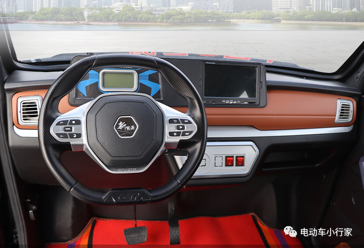 内饰方面,车辆拥有功能齐全的驾驶操作,车主可以自己选择采用方向盘还是把式操作,车辆的中控台采用仪表盘和多功能显示屏的一体机,支持视频、电台、音乐、倒车影像的功能,车辆还可以选配冷暖空调、油电两用,增加车辆驾驶的舒适性和续航能力的配置。