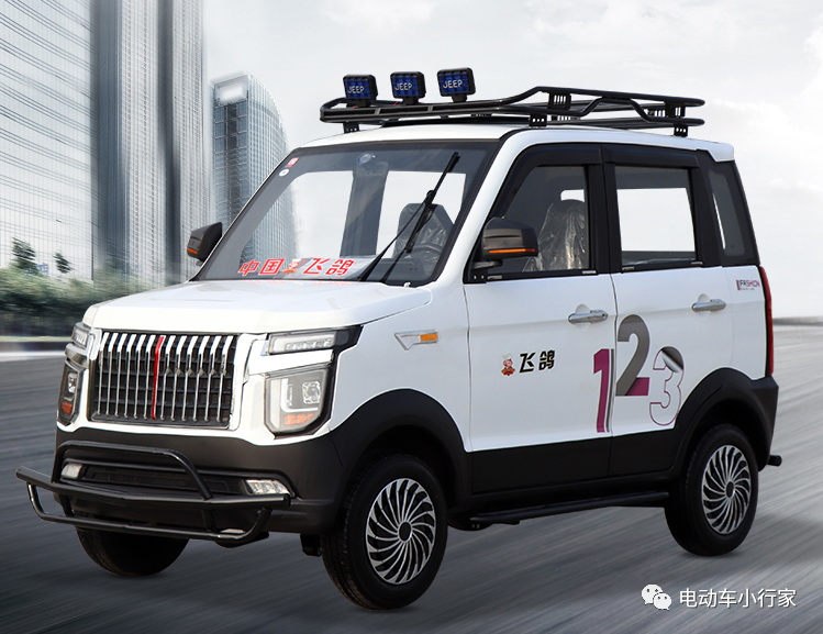 飞鸽红旗在飞鸽的四轮低速电动车中,定位是“时尚吉普车”,这款车从造型来看,确实和传统的老年代步车有一定差别,车辆前脸采用竖状格栅设计,左右侧是高亮LED大灯,下方配置防撞杆,车辆吉普造型,霸气时尚,而车辆拥有大部分四轮低速电动车都没有的备胎,不仅让它看上去与众不同,关键时候换胎也很方便。