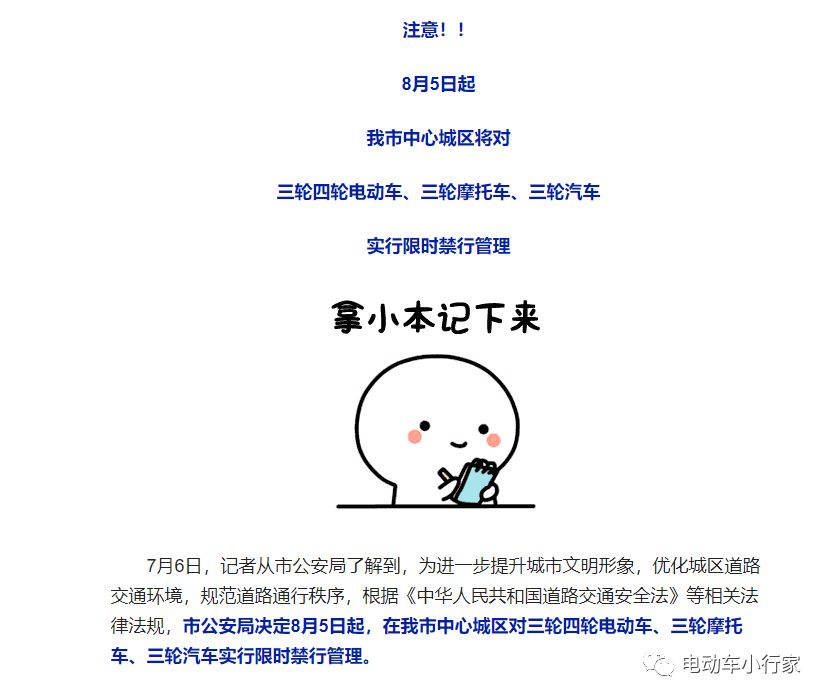 电动三、四轮车禁限行的管理,之前就有德州、湘潭、北京等多地展开,已经在实施的地方暂且不谈,目前将要实施的,据我所知,就有2个地方,将对电动三、四轮车禁限行管理。