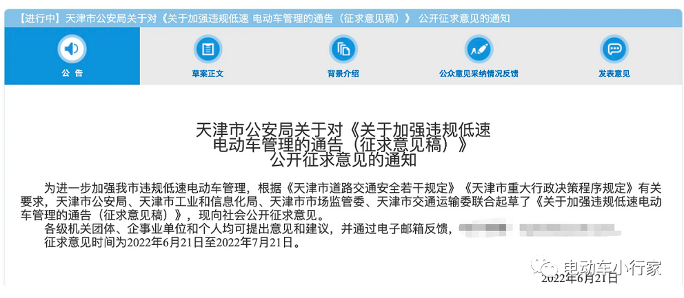 无独有偶,在2022年6月,天津市多个部门联合起草了《关于加强违规低速电动车管理的通告(征求意见稿)》。该《通告》明确规定,禁止生产、销售违规低速电动车。