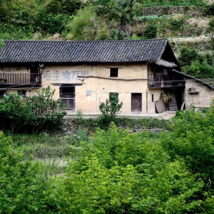下过雨的水泥路面还未干透,雨后的痕迹清晰可见,被雨打得稀巴烂的树叶到处都是。回老家的路程也不太远,将近一个小时就能到,水泥路也还好走,越往上路越窄,水泥路也变成了黄泥路,应是头晚下过雨,清晨的雾气还未散去,曲折的小路只看得见脚下,被雨打湿的黄泥路又湿又滑,泥泞的山路让行走越发艰难,加上看不清前面的路,开车就很困难,平时一个小时的路程用了两个小时才到。到老房子还有一小段下坡路,由于路很窄,下不去,车停在了马路边。下车后,深一脚浅一脚地从黄泥里拔起来又陷下去,一步一蹒跚地走到了老房子面前。