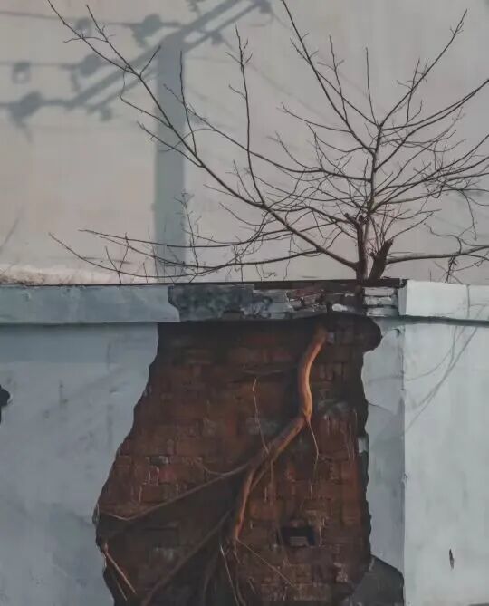 事与愿违,墙会在那里永驻,可树再也不会回来了。那天下课我多留心了一下,树桩已经被连根抽起,一切都是那么的突然,不余一丝余地,扎根不深,极易除尽。墙永远地失去了树的庇护,失去了自己名义上的伴侣,或者说墙与树此生已绝缘。