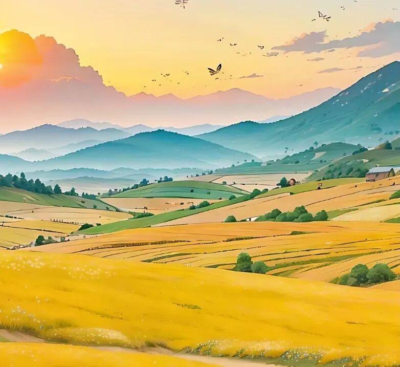 大门前是一片空地,那里常常堆满了粮食,外婆总是把玉米粒等谷物堆起来,在天气晴朗时又摊开,我有时候也会帮忙,但总是作弄它们,然后累倒在门口的躺椅上,大脑放空,脑子里嗡嗡的,只是呆呆地看着外婆笑眯眯地抚摸它们。这把躺椅虽是外公的专属座位,但农忙时节,它就归我啦。