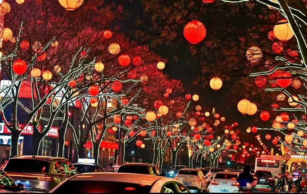 长廊的尽头醺橘暖灯 是新春的气息给换的彩节 竹笼新添的衣裳是红绒围着它转 屋梁在夜里听灯笼守护的故事 大福携锦鲤藏光影里跳舞 孩童喜欢润红的冰糖葫芦 而我喜欢古典的墨黑红纸