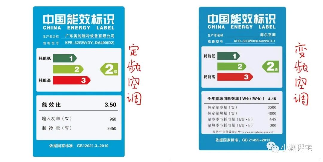 定频空调的能效等级和变频空调的能效等级标准是不同的。