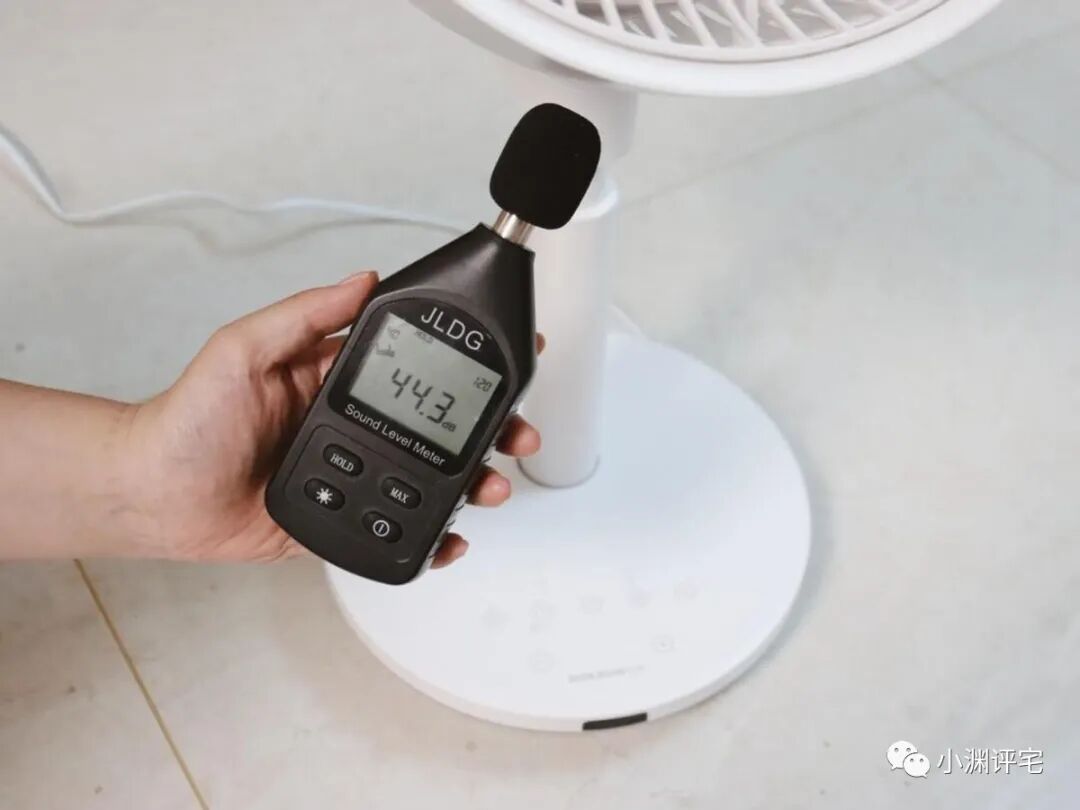 一般15㎡左右的房间,使用5m/s和15m³/min的产品就足够了。我刚买的这台循环扇的参数是5.5m/s和16m³/min,档位开到最大,看一下它的噪音▽