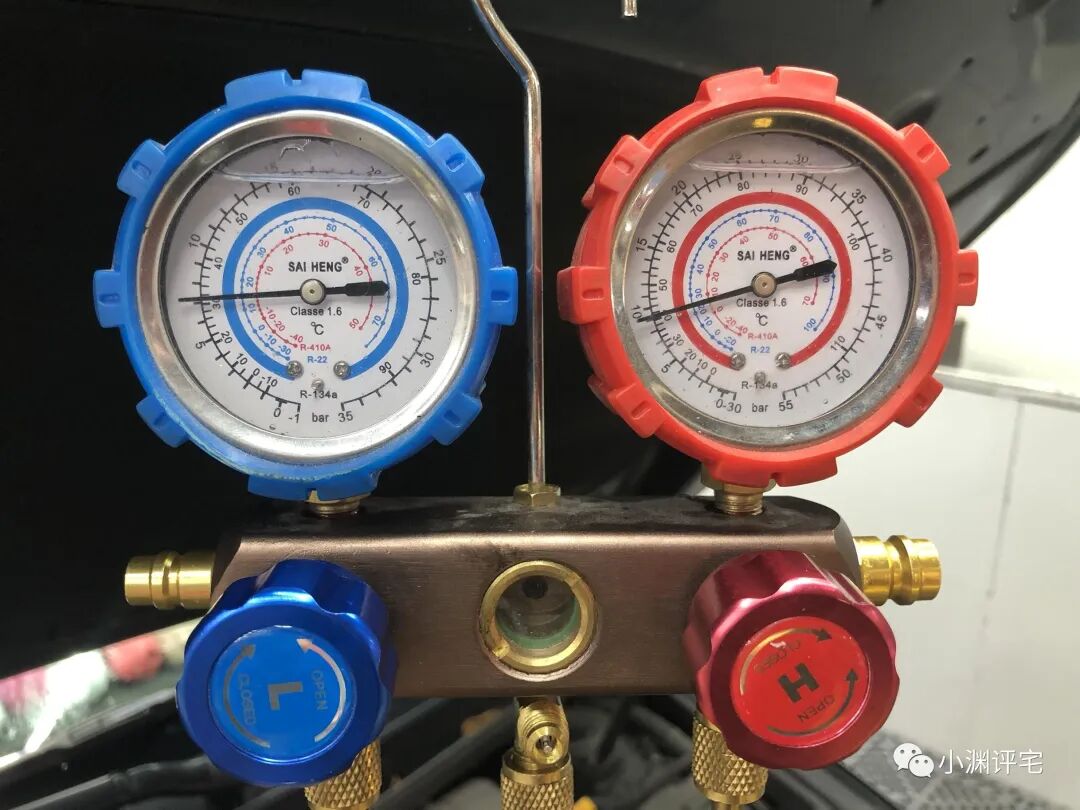 安装人员会随身带着一个气泵,这个气泵上会有一个压力表。抽真空前,需要把气泵连同压力表一起接在室外机侧面的阀门上。